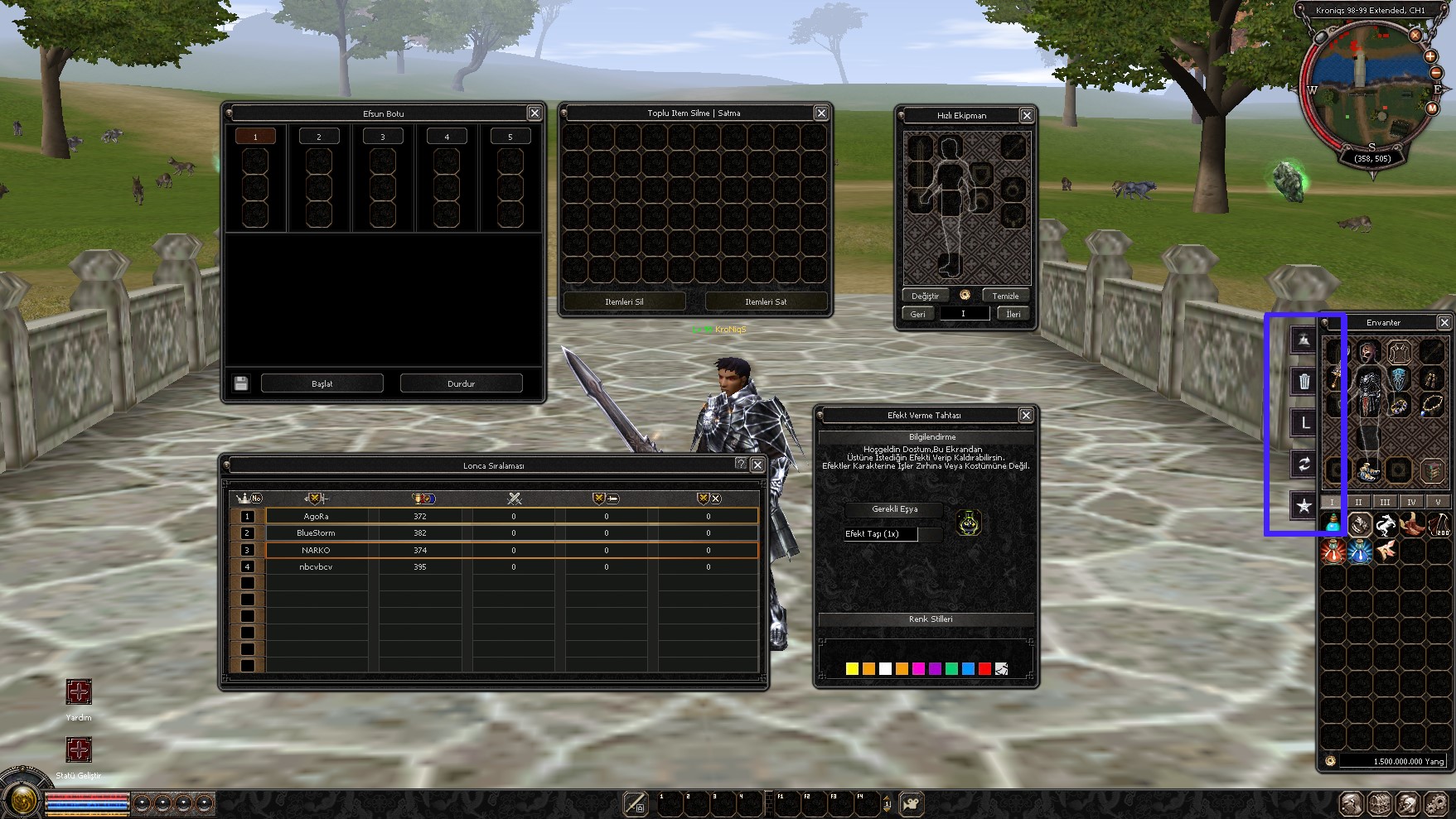 Oyuncuların oyun içindeki işlemleri daha hızlı yapabilmesi amacıyla, hızlı ekipman, genel sıralamalar, hızlı sil-sat, kostüm efekt ve efsun botu gibi özellikler envanter yanı kısayol sistemlerine dahil edilmiştir.